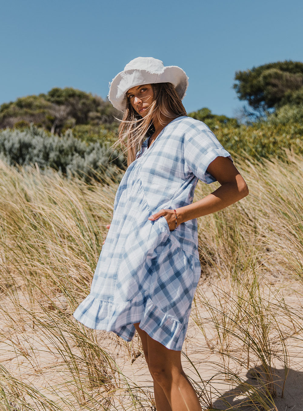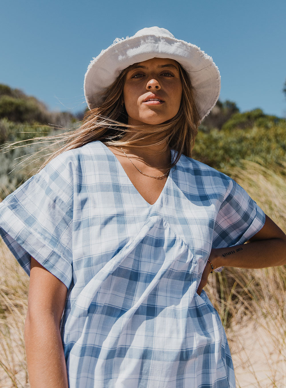 With a relaxed 90’s inspired feel, the Daisy dress is made for sunny days with its slouchy silhouette and classic check pattern. Designed to take you from this season to the next, from our Own Kind in house label.