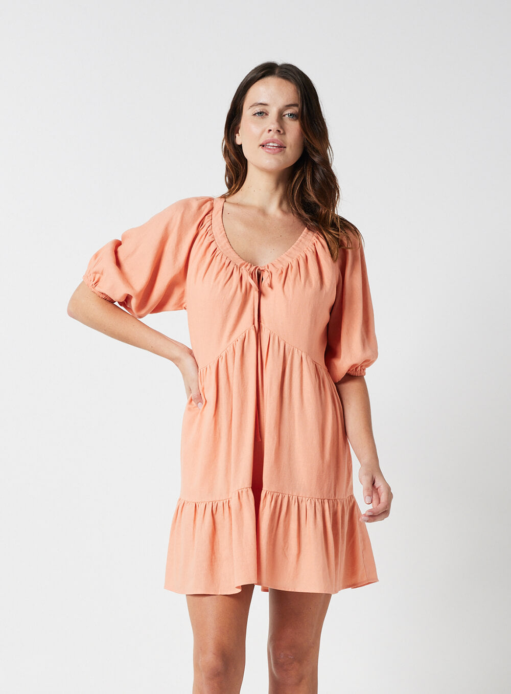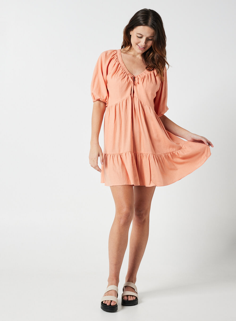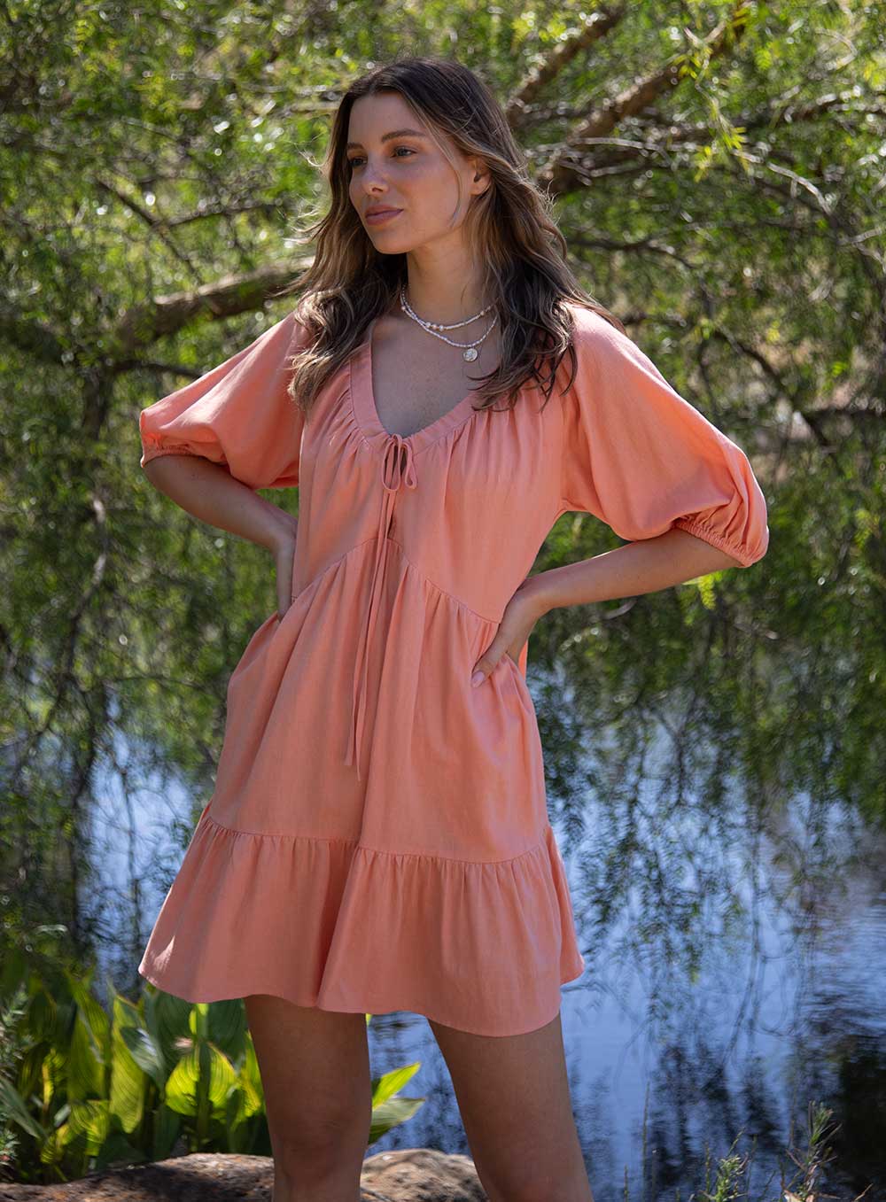 Eloise Smock Dress-CORAL