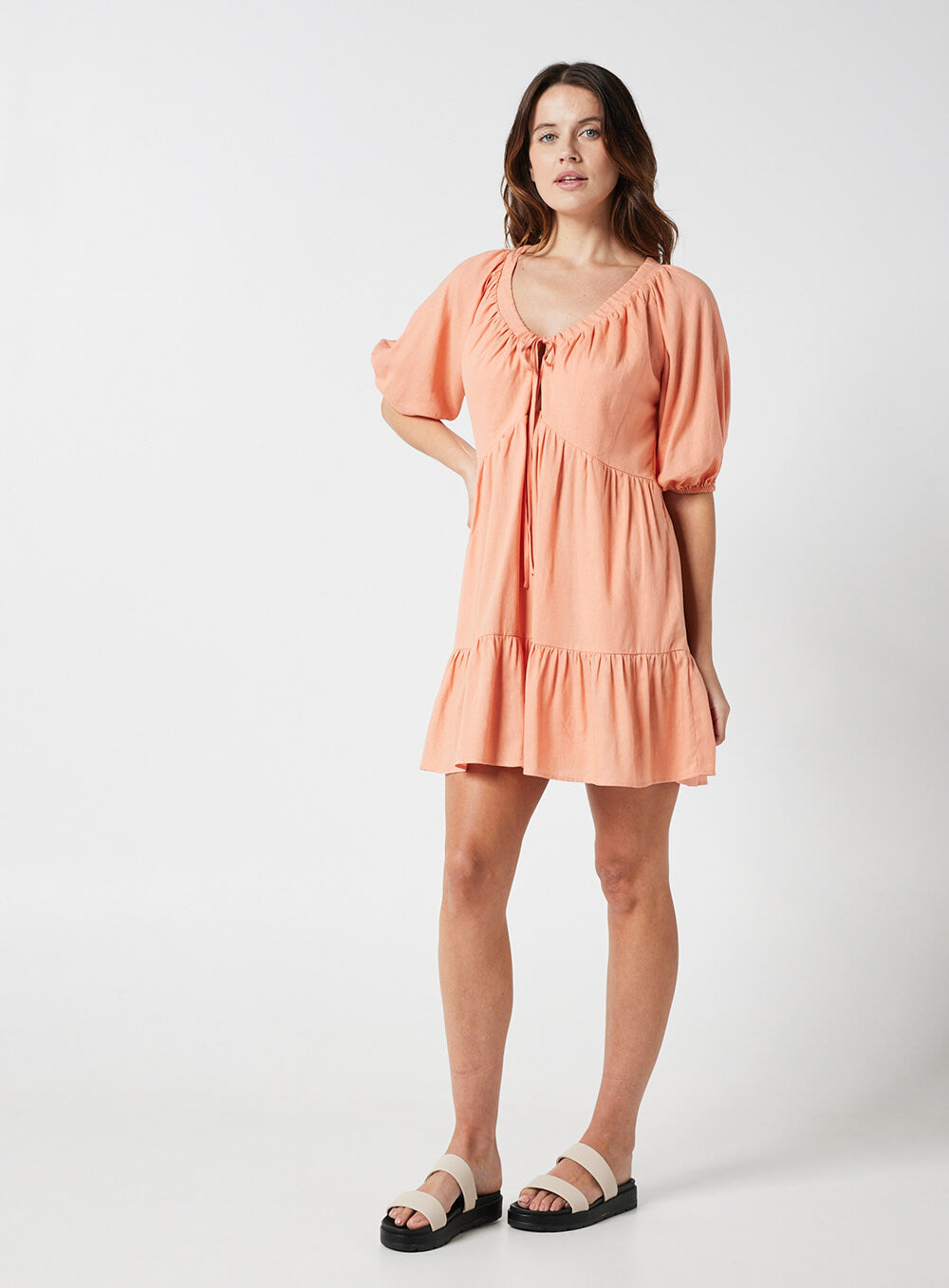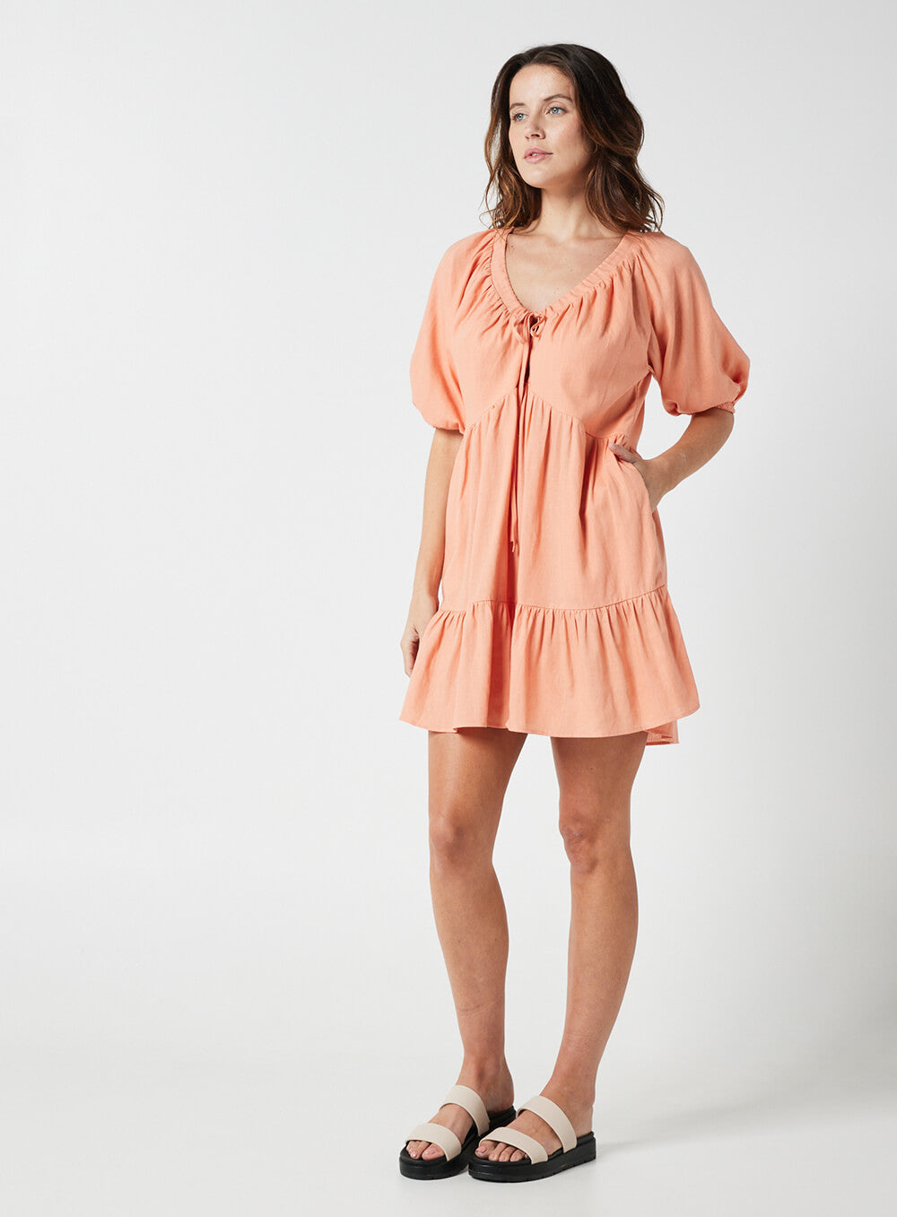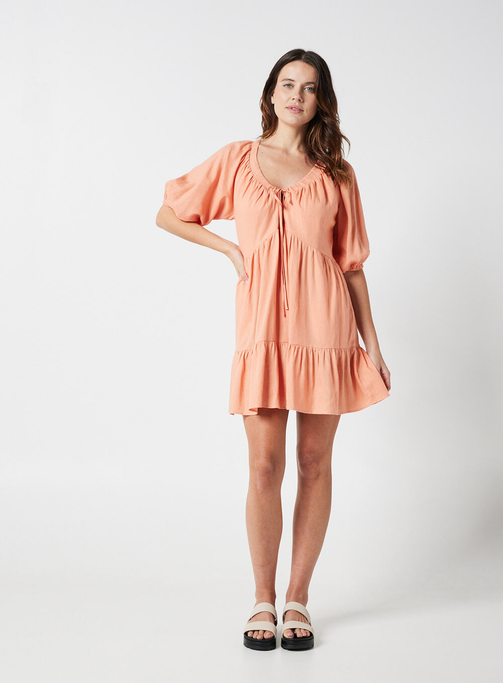 Eloise Smock Dress-CORAL