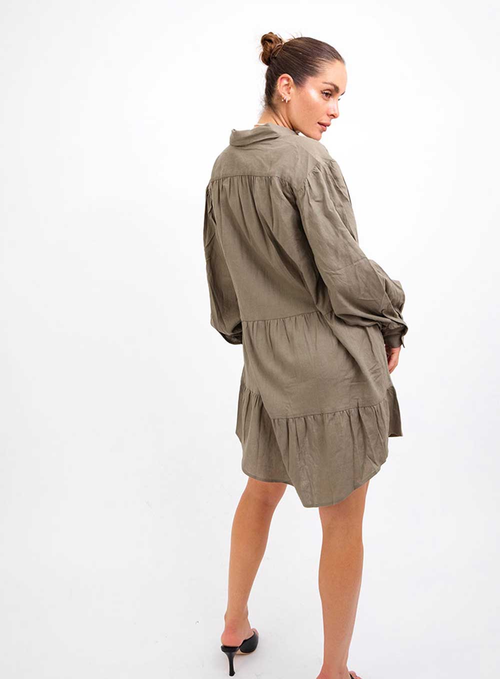 This garment is made from a luxe washed 55% Linen, 45% Viscose blend. Our model wears a size AU 8/S.