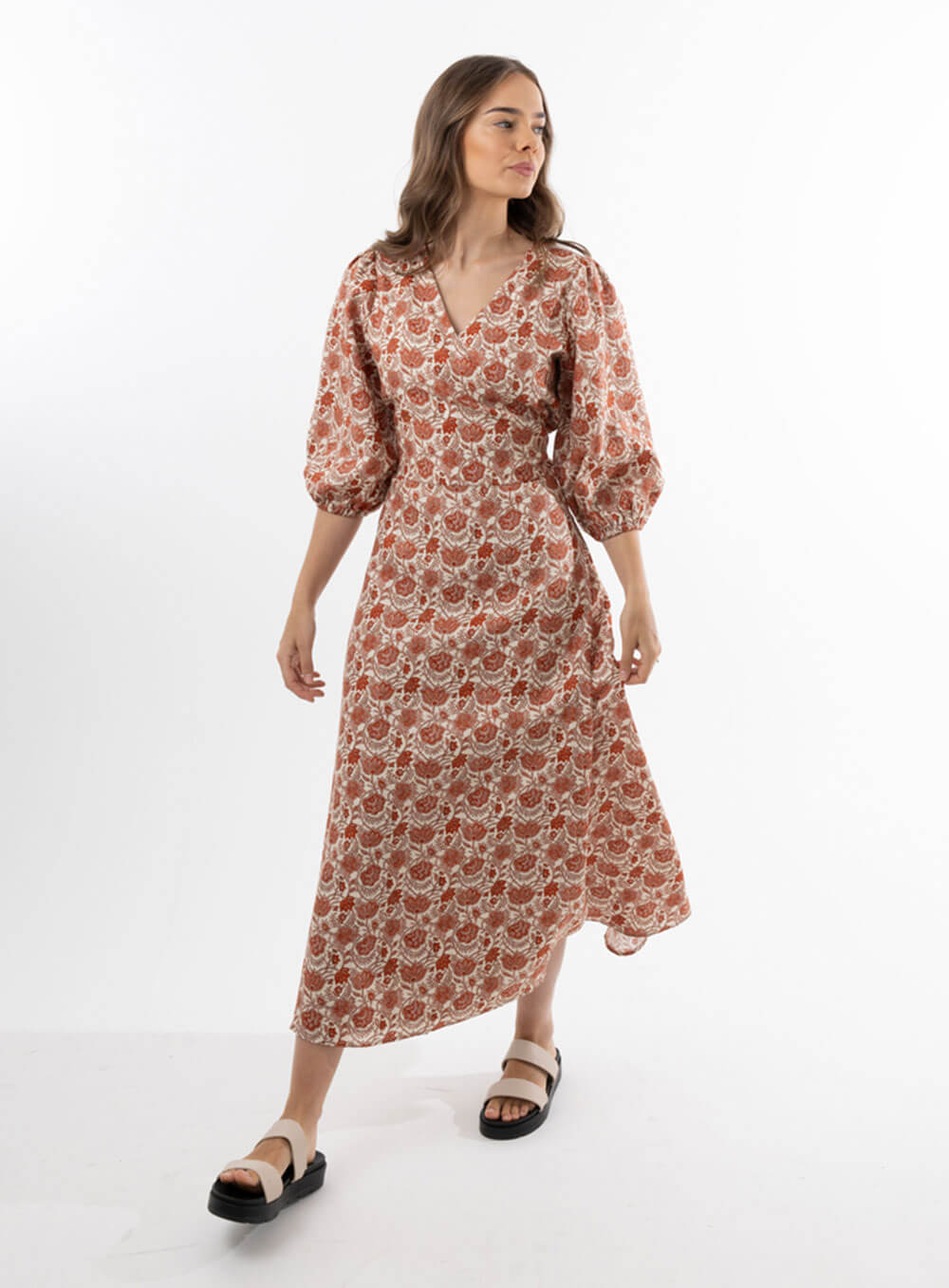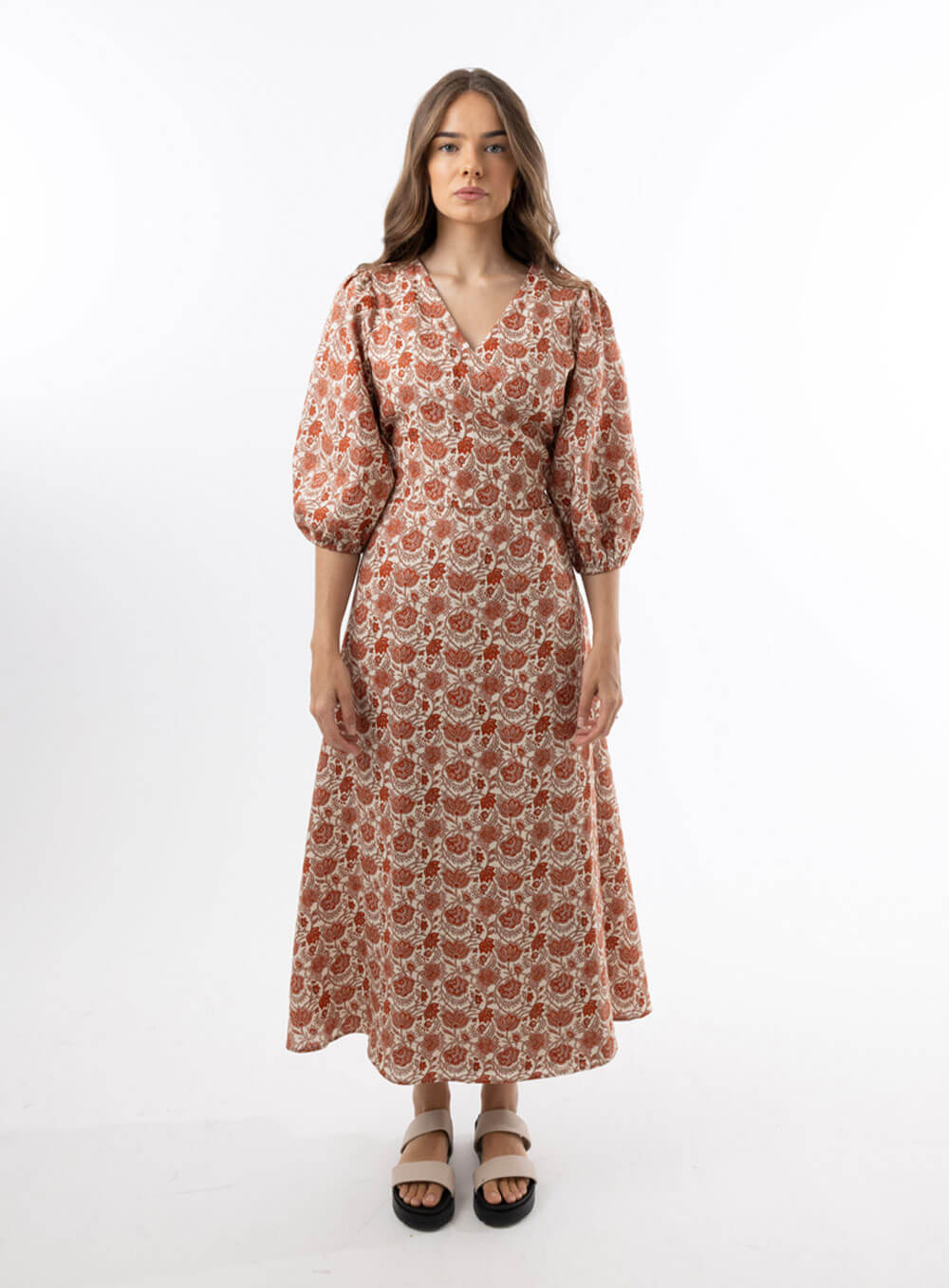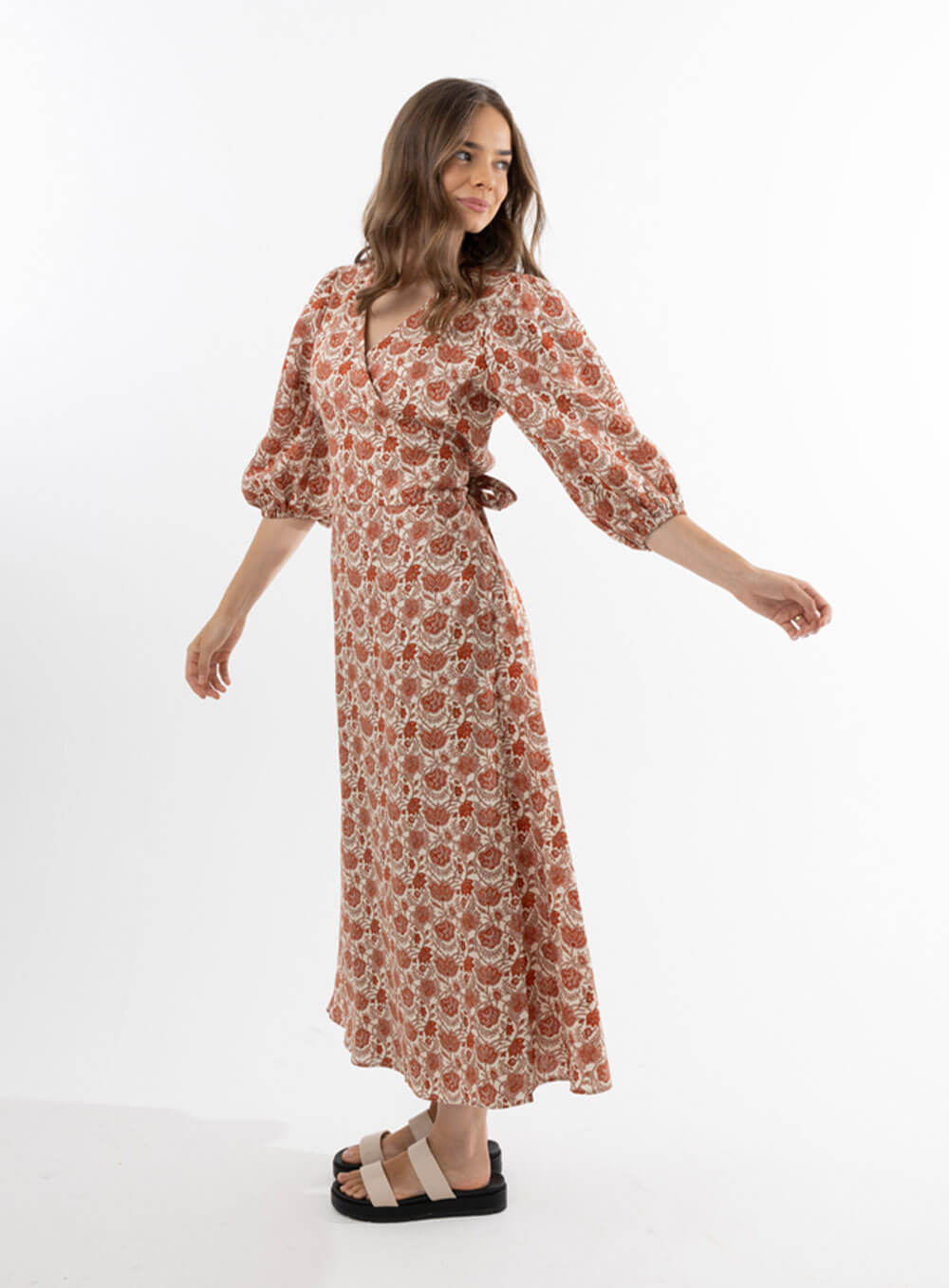 Introducing the Lydia Linen Wrap dress in our exclusive print, a one-of-a-kind piece that embodies the essence of understated timeless elegance. This classic piece is designed to flatter every body kind, in breathable luxe linen.