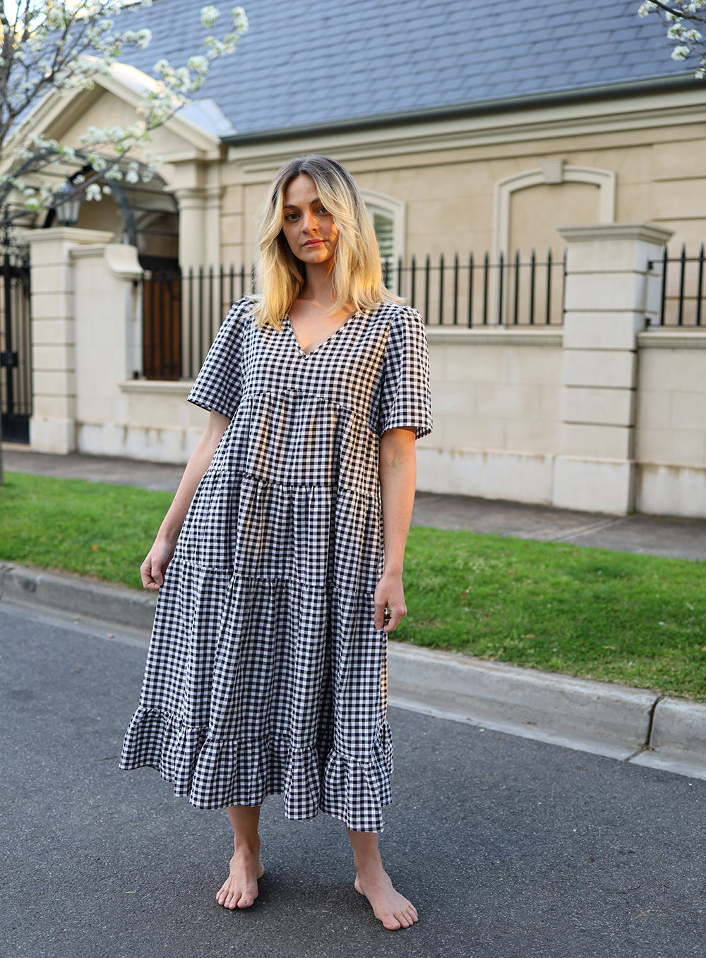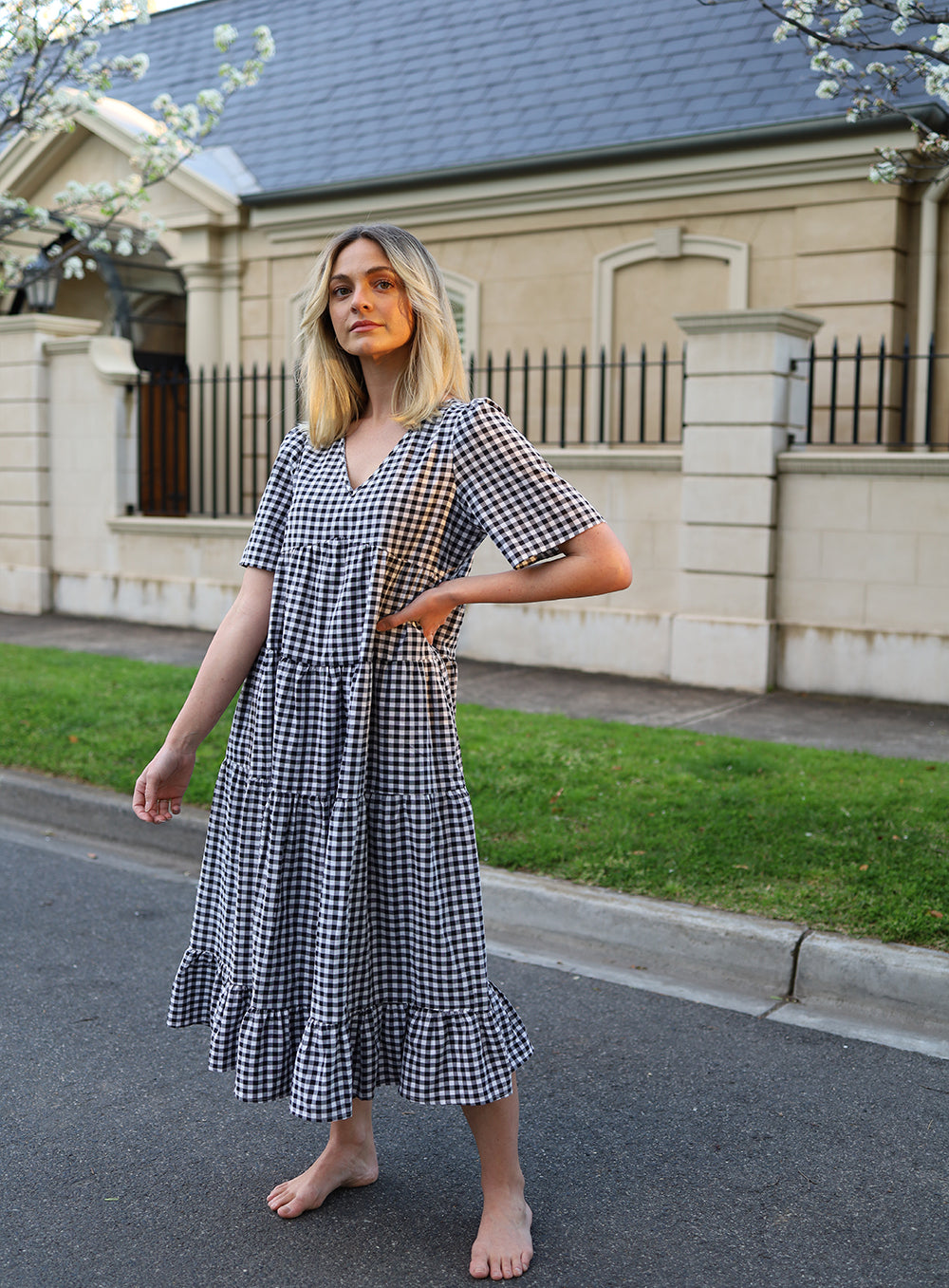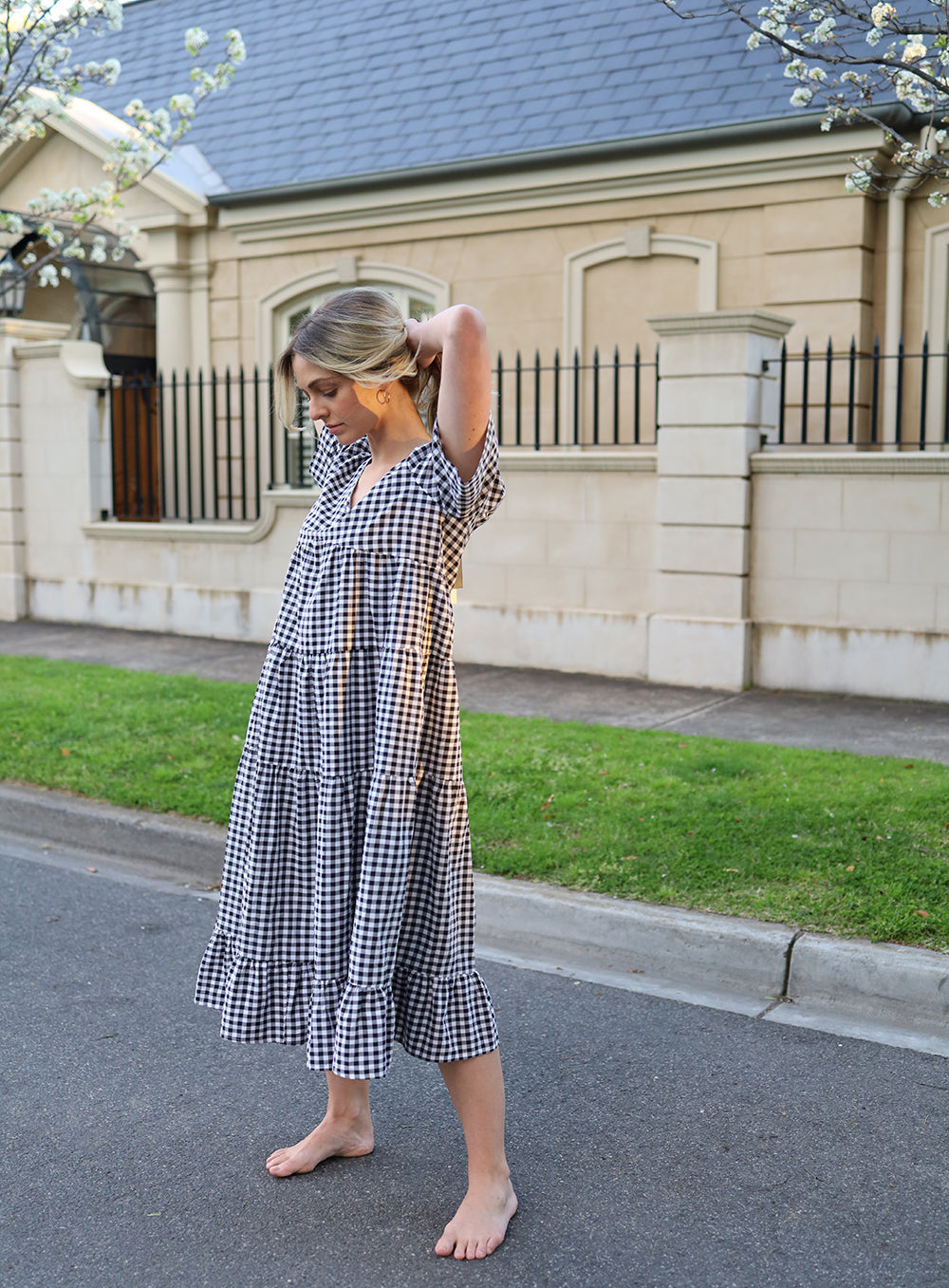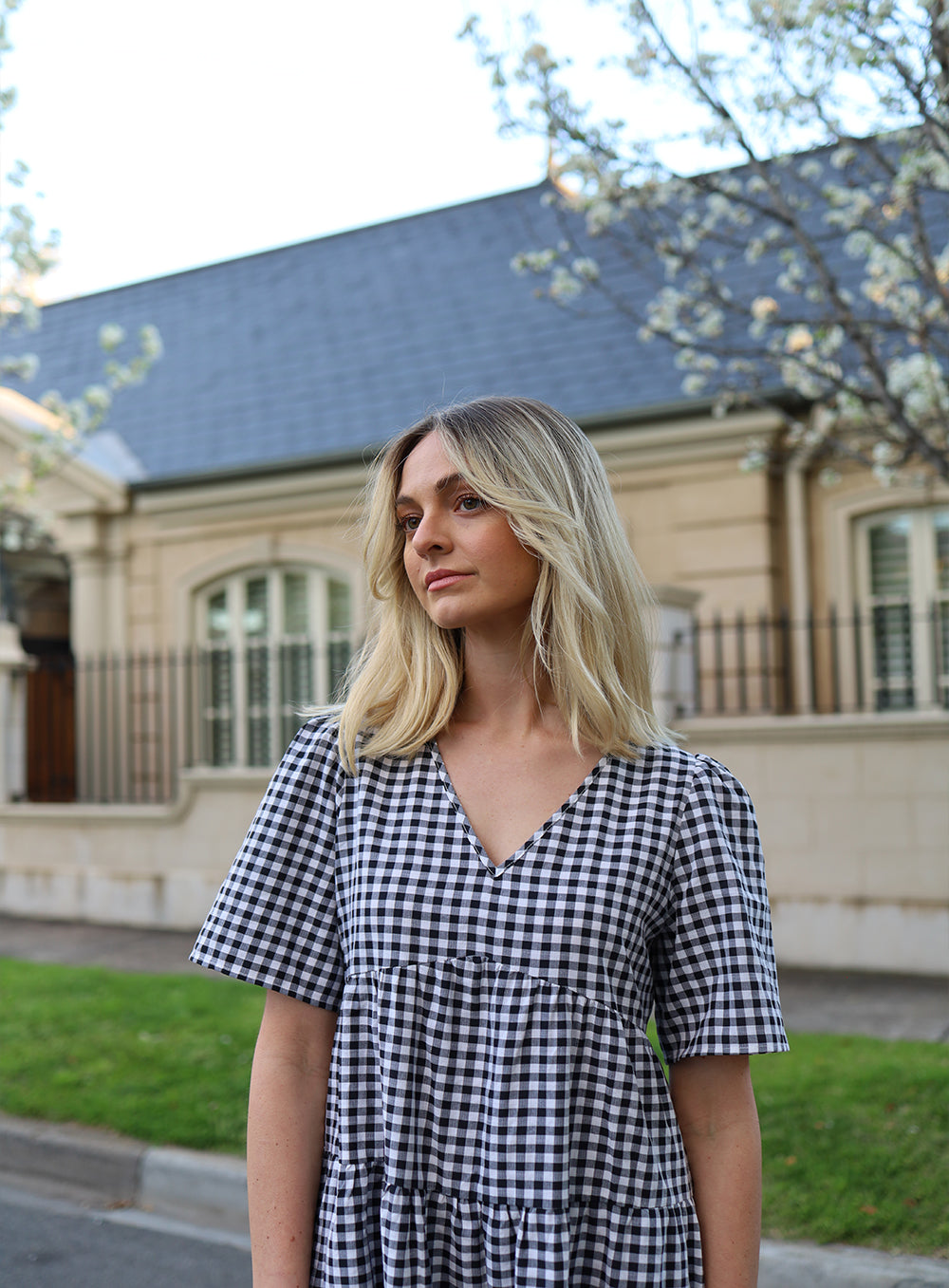 An easy throw on style perfect for everyday, in a contrast black and white gingham.