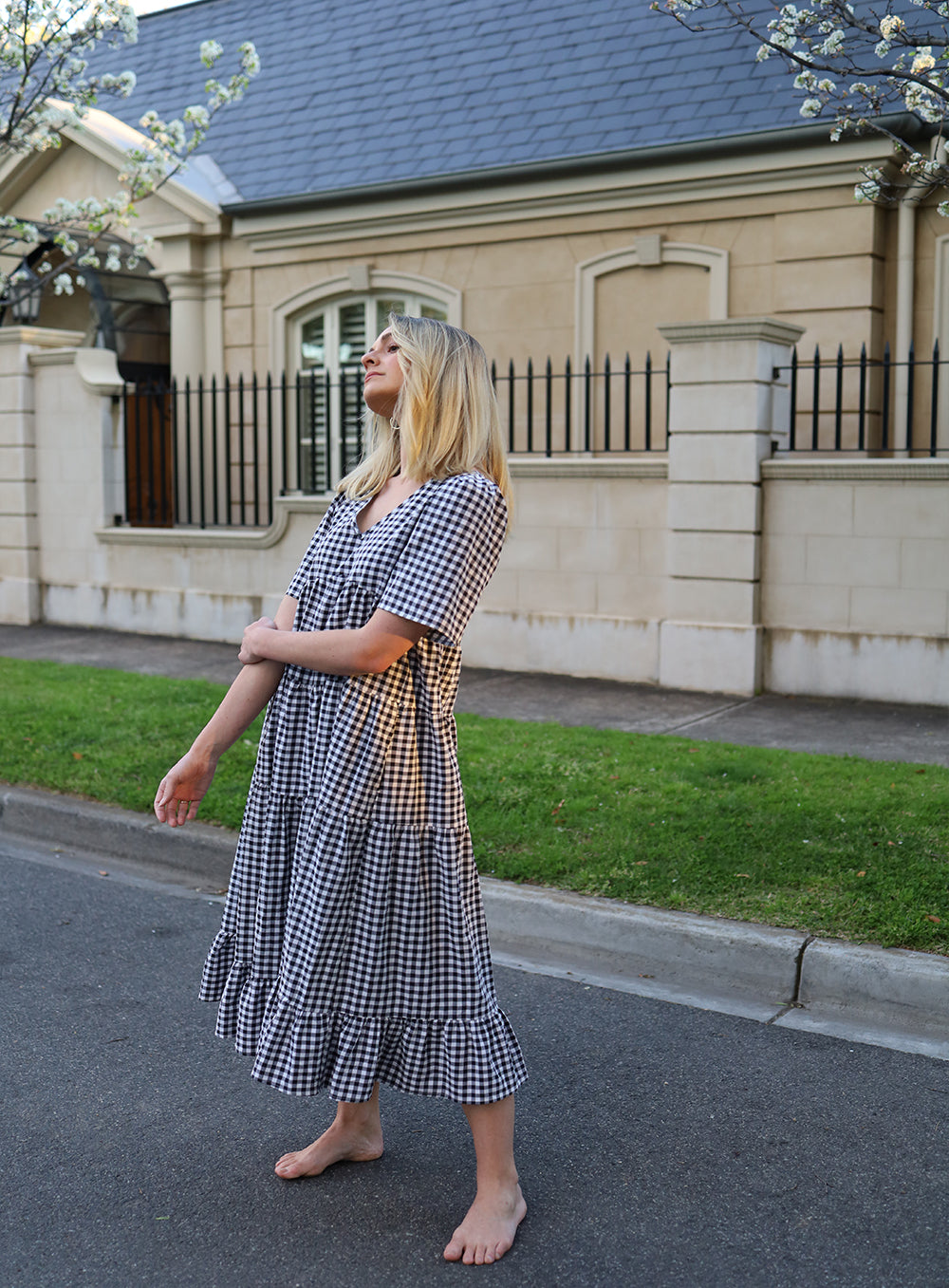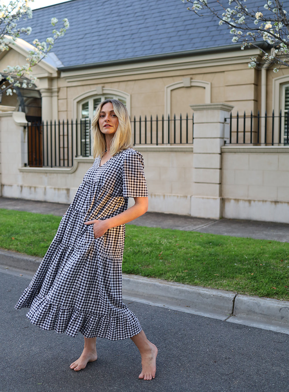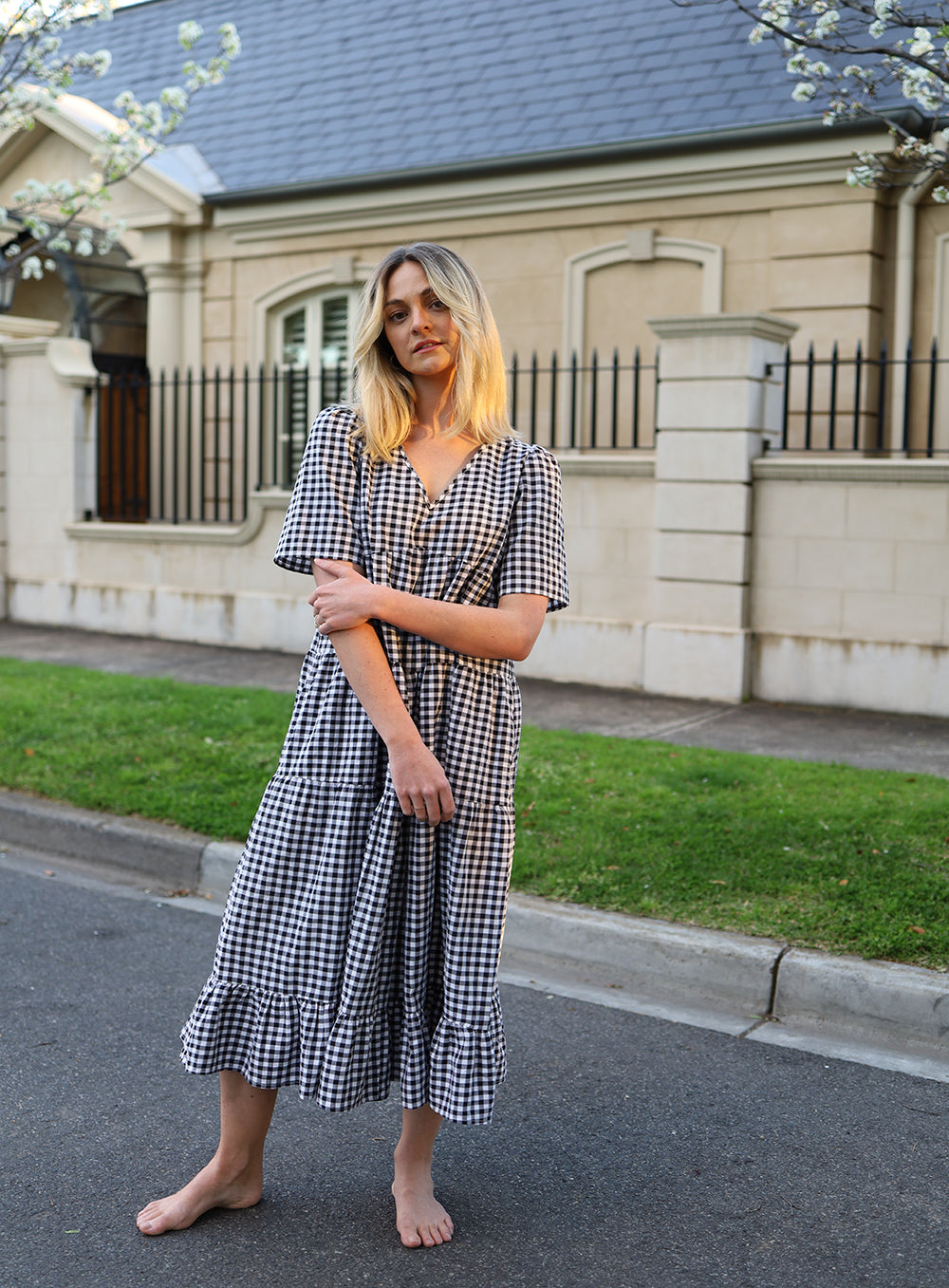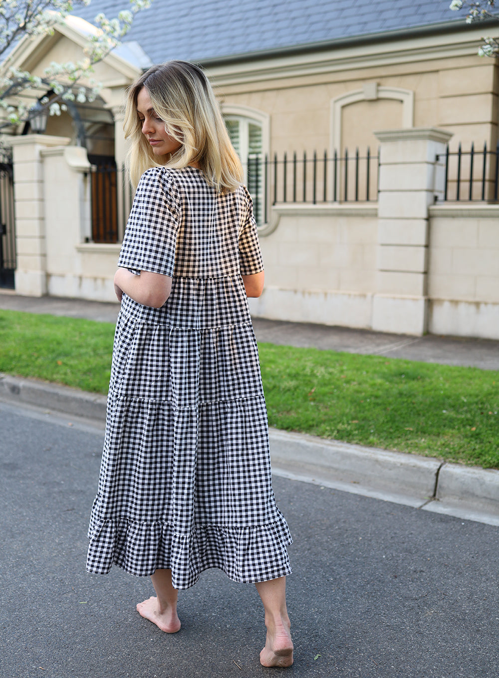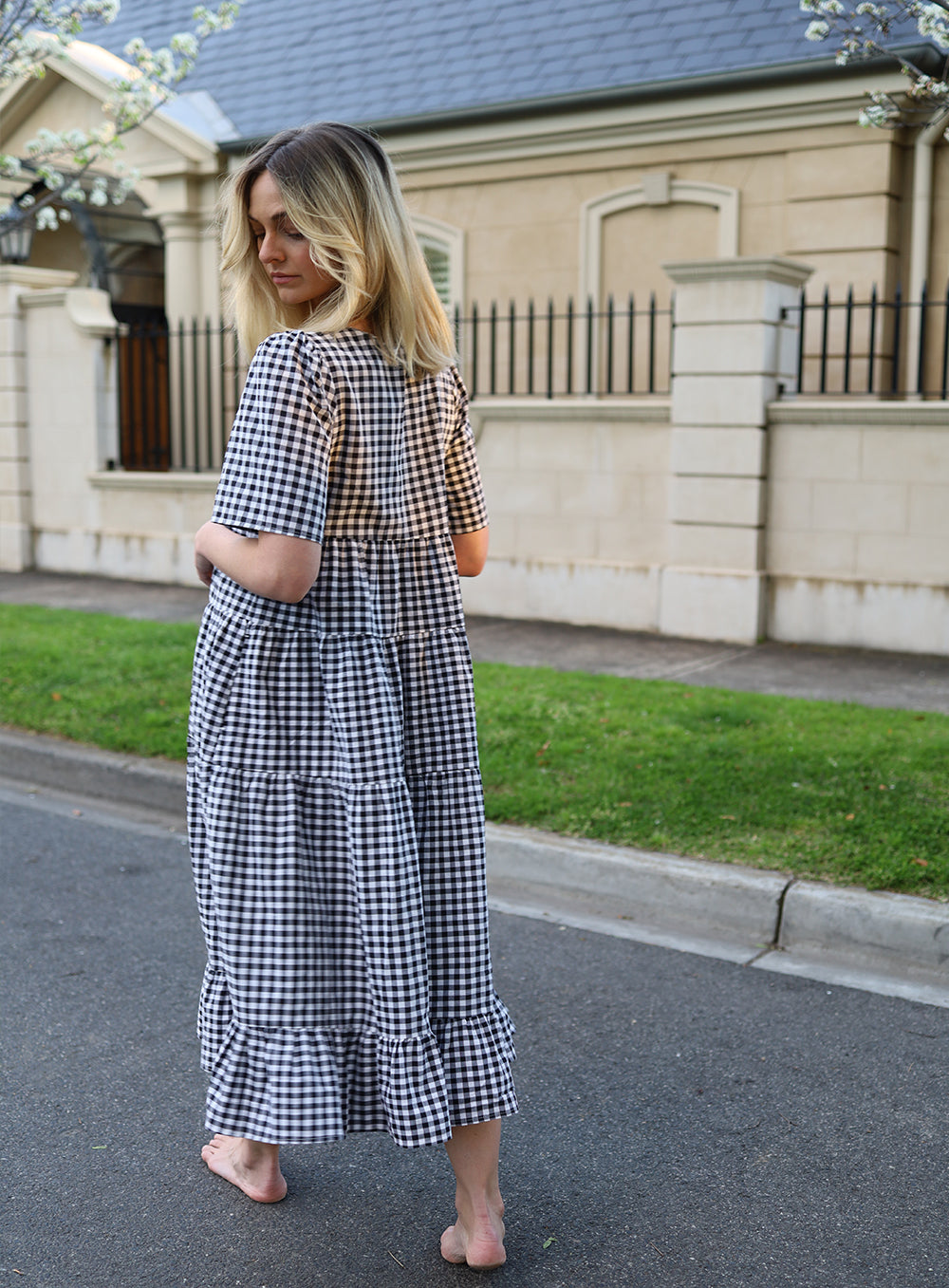 An easy throw on style perfect for everyday, in a contrast black and white gingham.