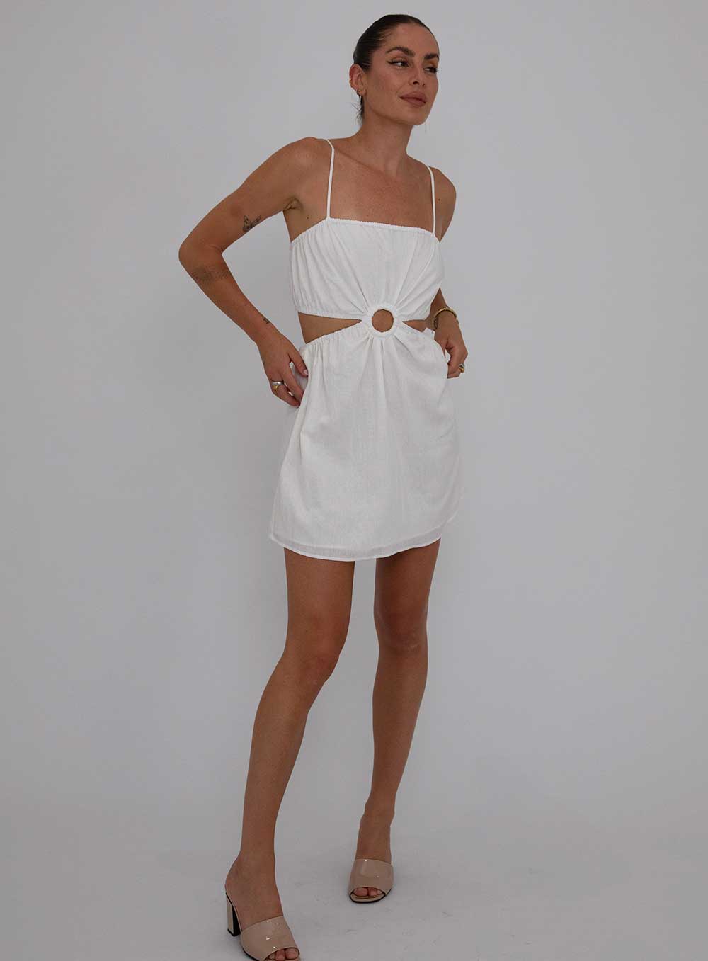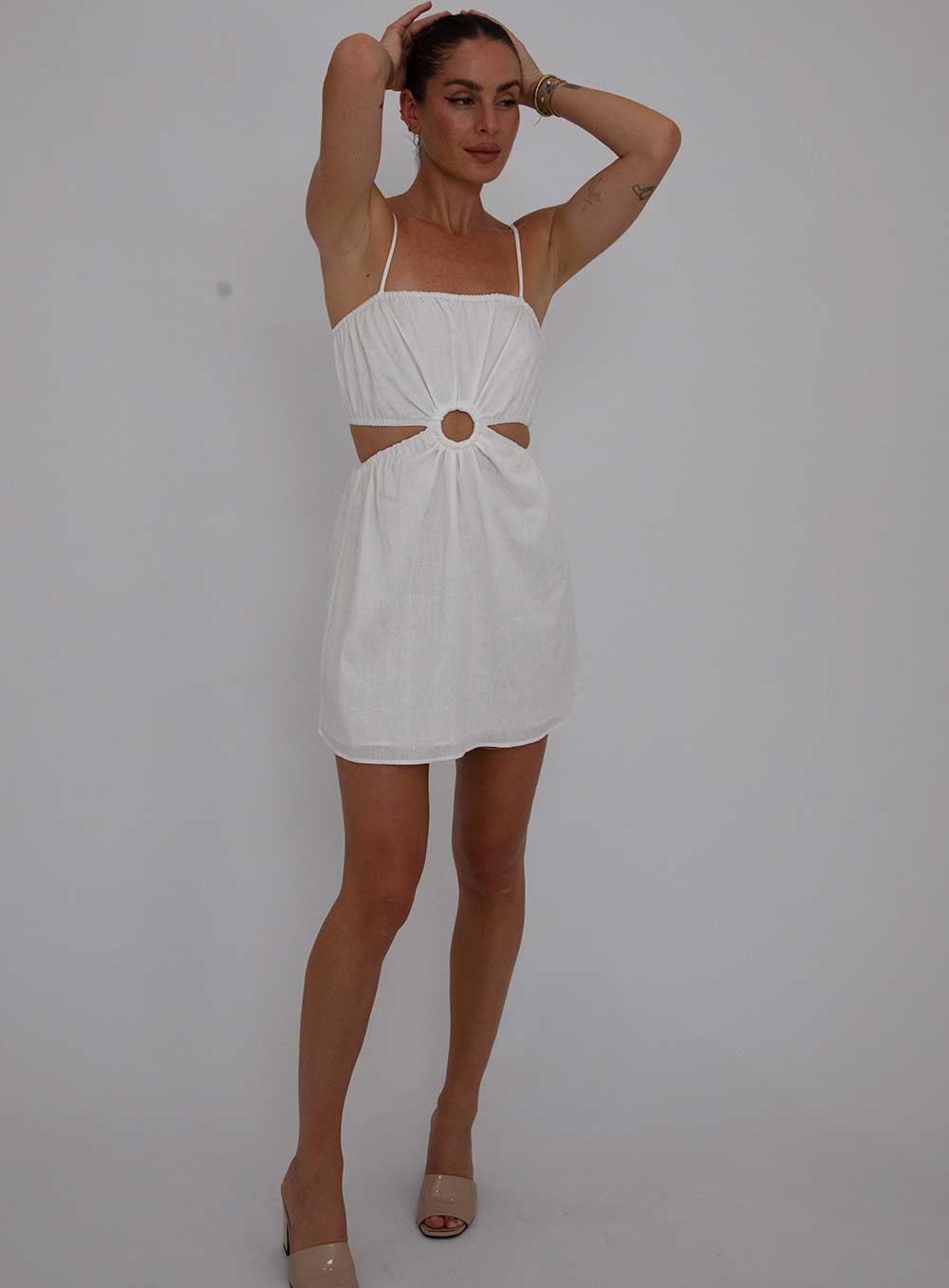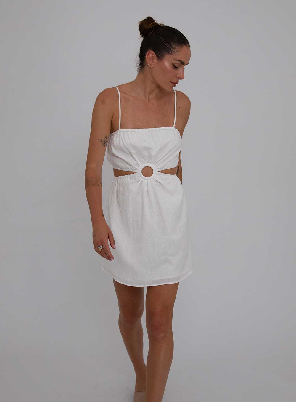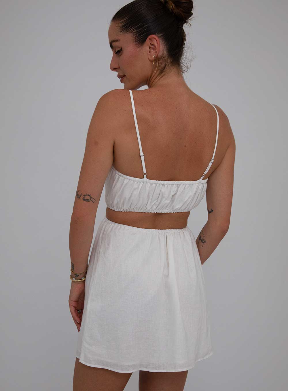 This garment is made from a luxe washed 55% Linen, 45% Viscose blend. Our model wears a size AU 8/S.