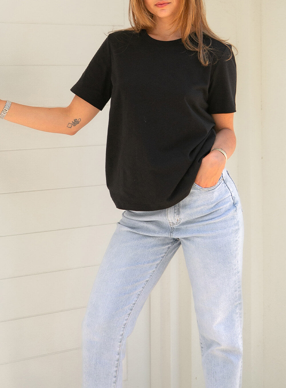 Created in soft and breathable 100% Organic cotton jersey. Our model wears a size AU 8/S.