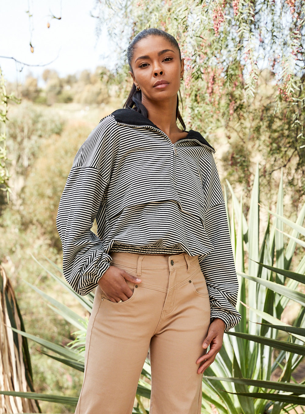 Rug up with the Eddie Hoodie as the temperature drops. A transeasonal essential, in a cool and classic stripe, exclusive to Own Kind.