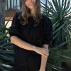 This garment is made from 100% washed linen. Our model wears a size AU 8/S.