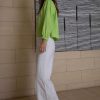 This garment is made from 100% washed linen. Our model wears a size AU 8/S.