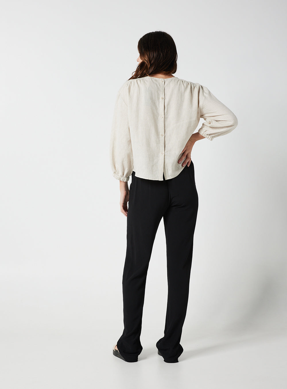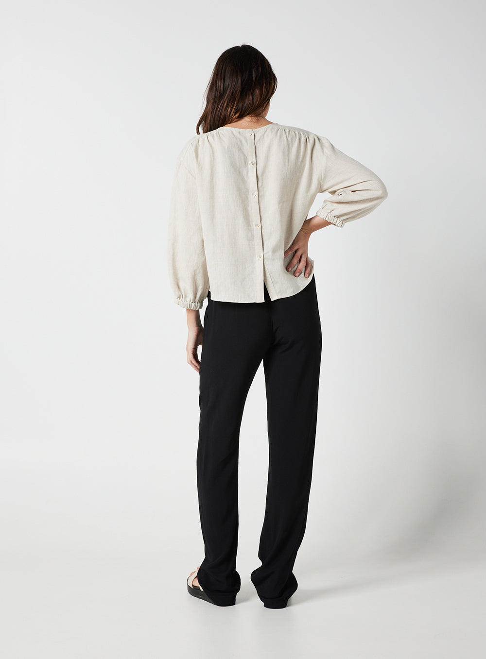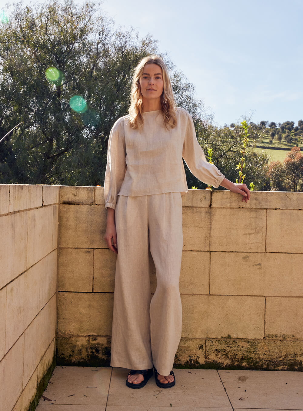 Cool and classic, the Freya blouse is a versatile silhouette created in luxe sustainable linen. A timeless essential, from our Own Kind label.