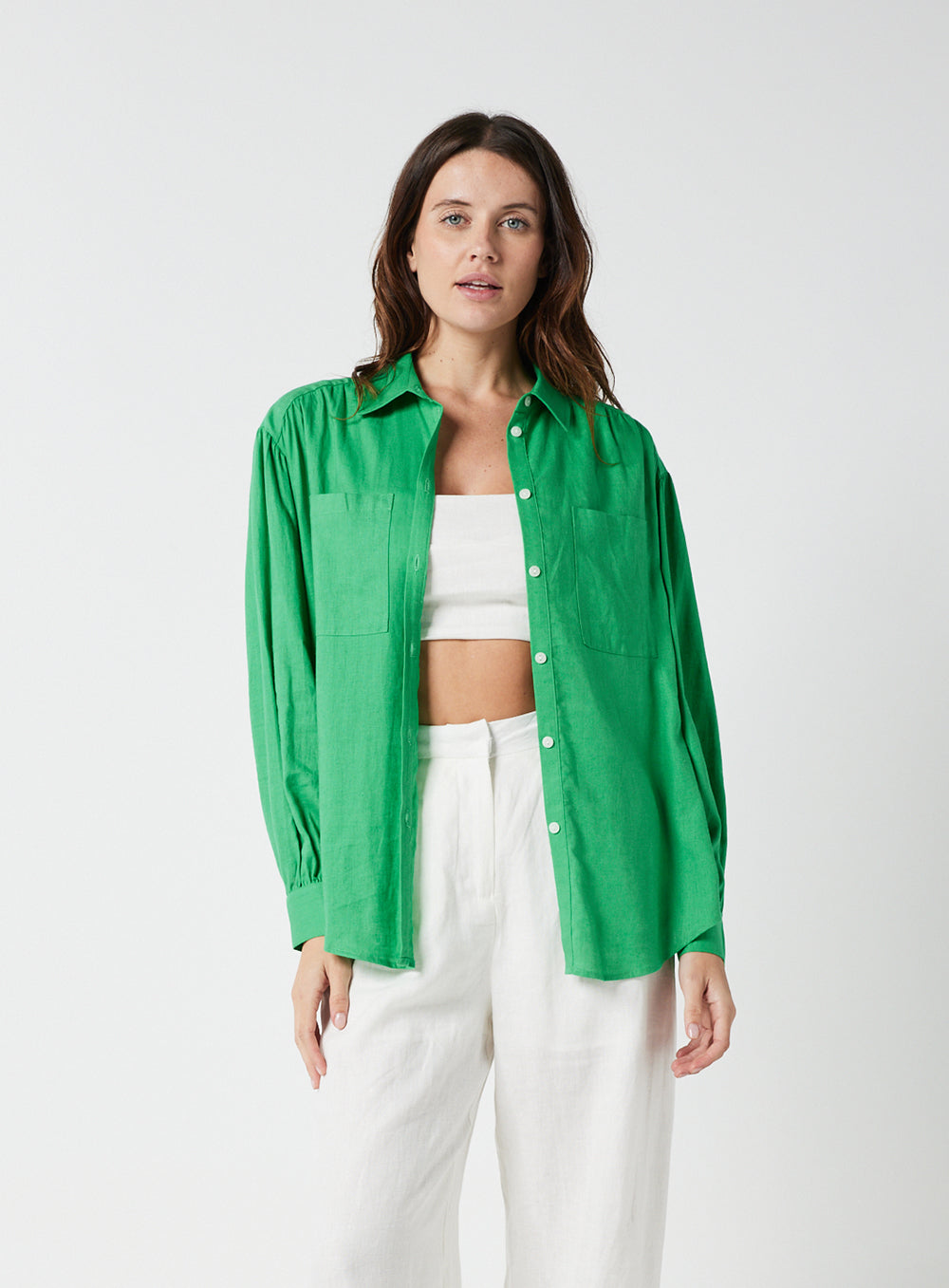 Classic with a twist, the Luca shirt is our must have essential piece. An effortless and figure flattering staple in a bold hue from our Own Kind label.