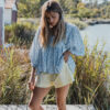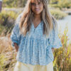 Oversized fit made from super soft 100% Rayon. 3/4 Puff sleeves. Babydoll style cut. Model wears size 8.