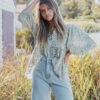 Oversized fit made from super soft 100% Rayon. 3/4 Puff sleeves. Babydoll style cut. Model wears size 8.