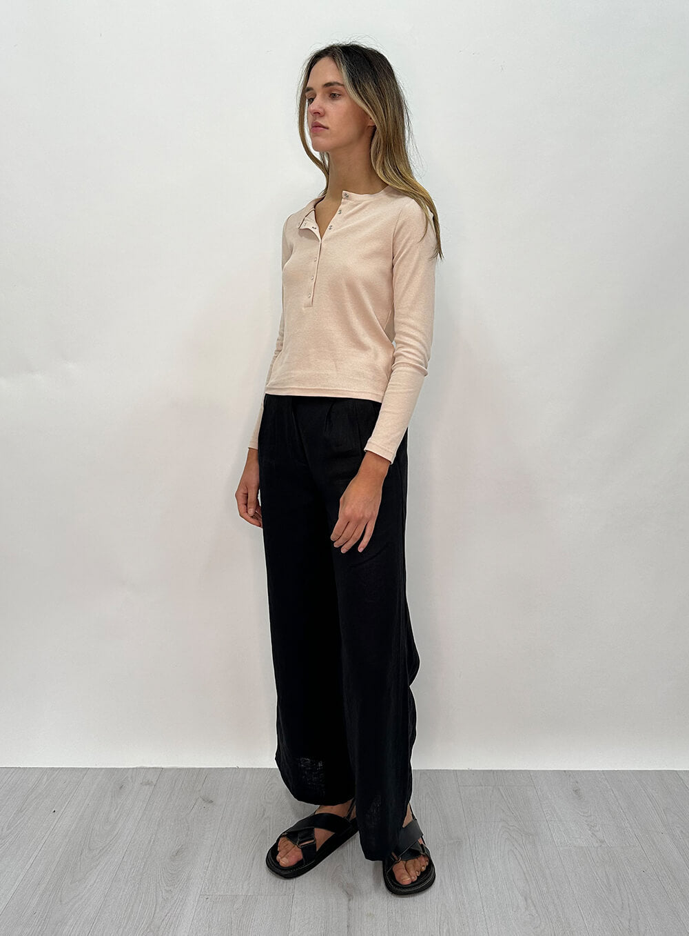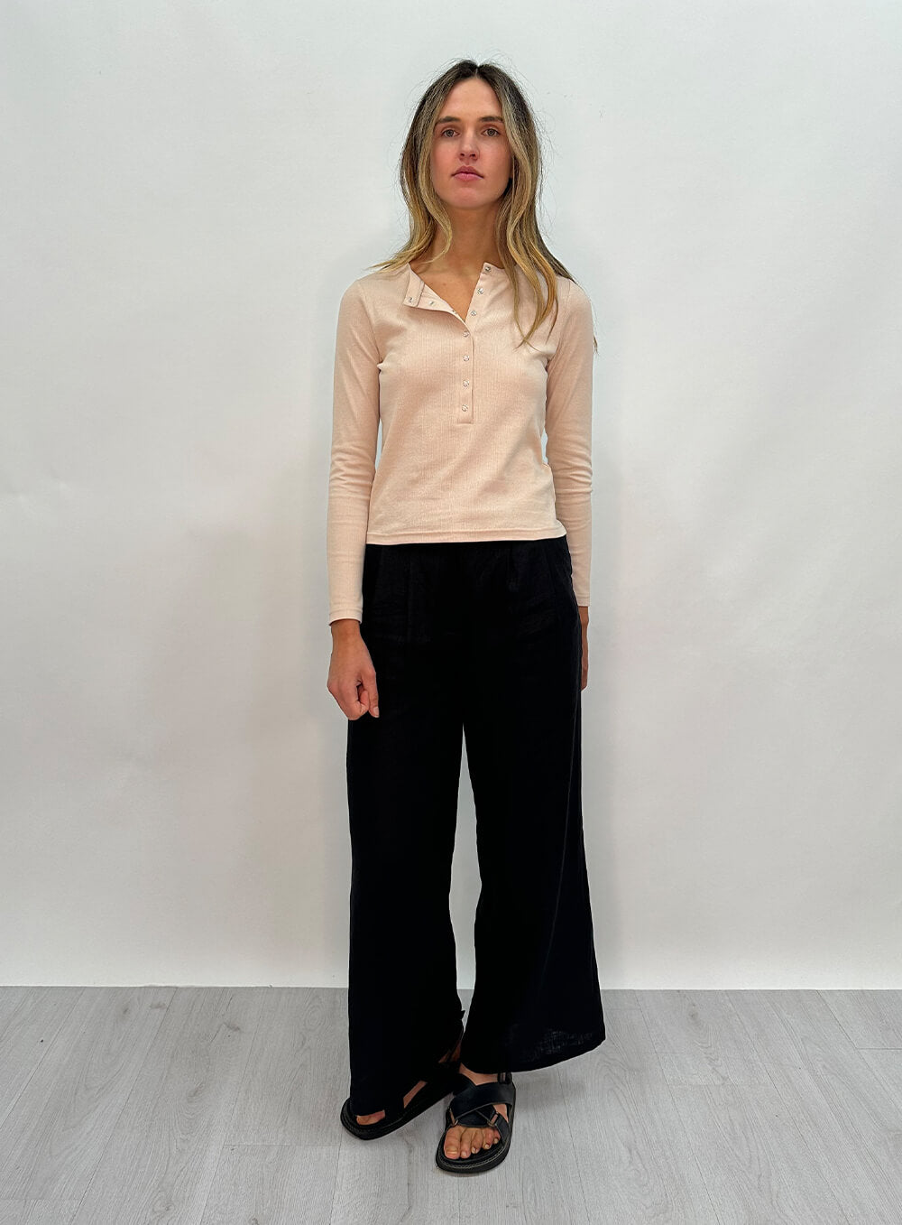 Ruby Henley Rib Top-STONE