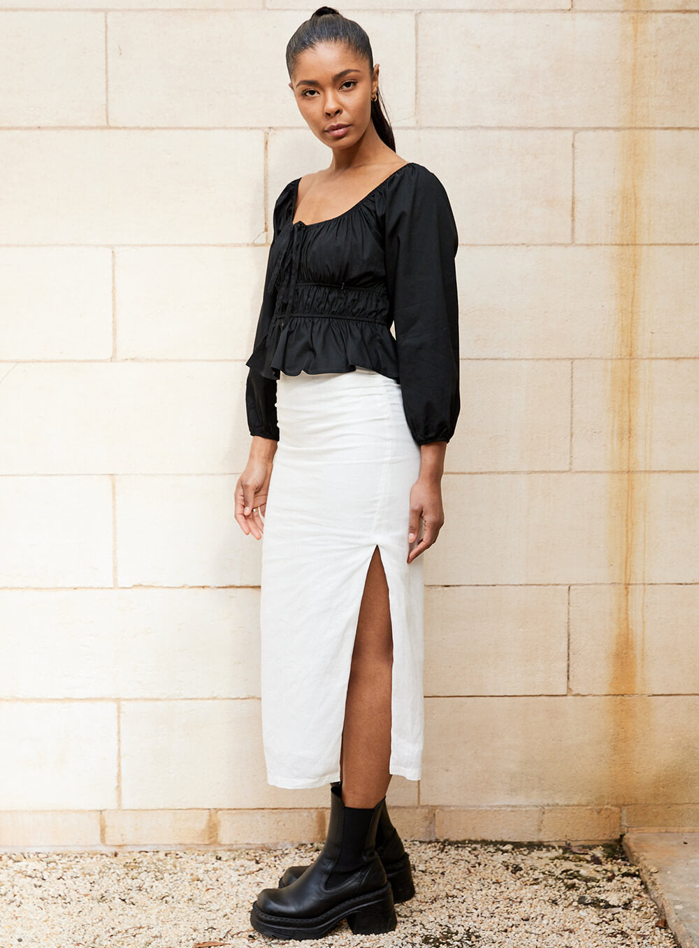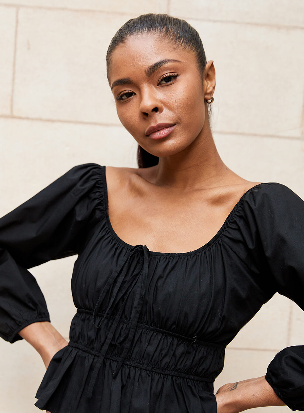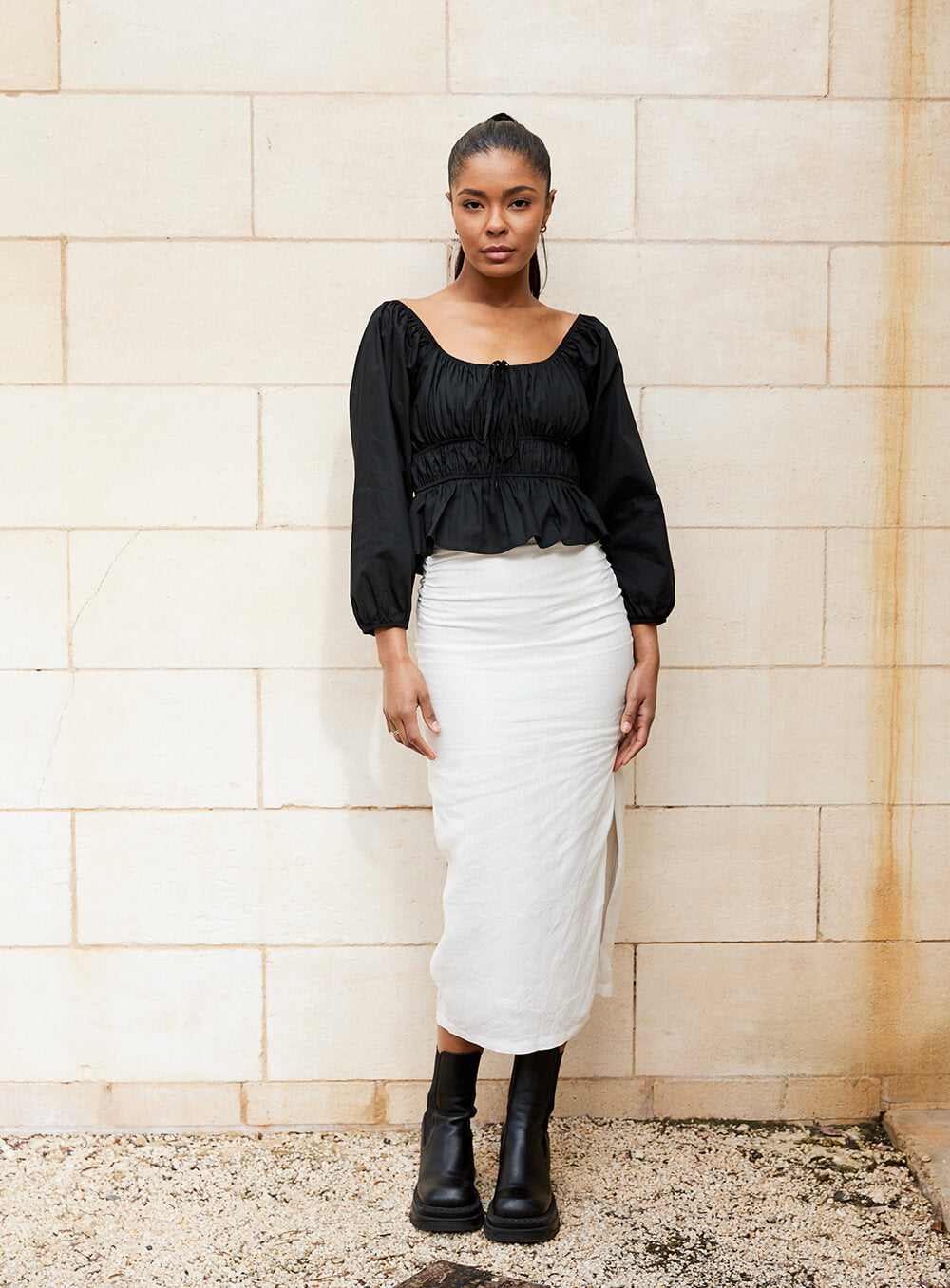 Premium natural 100% Cotton. Elastic detailing. Model wears size 8-S-S/M.