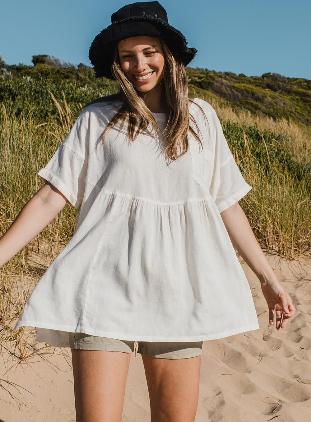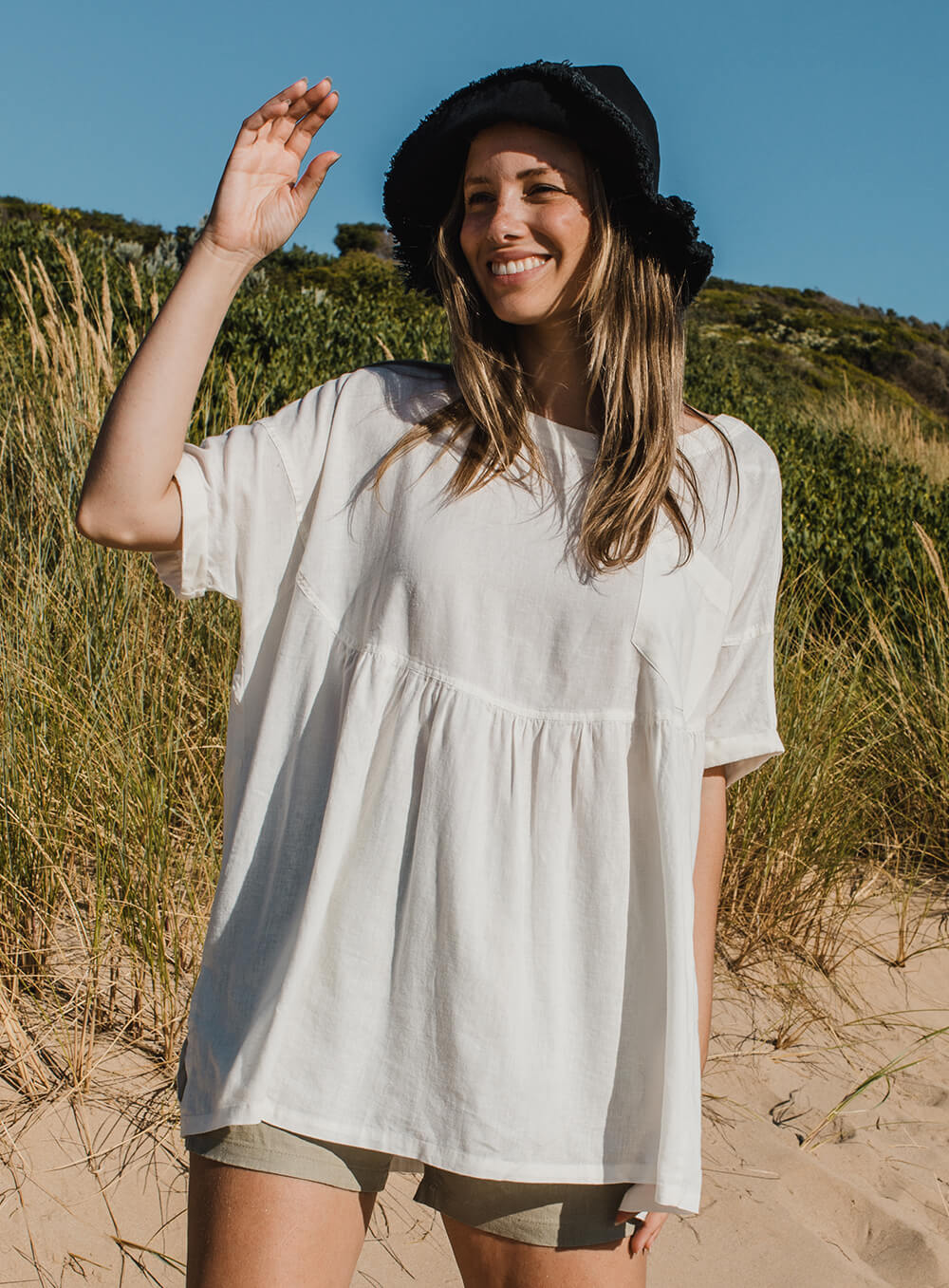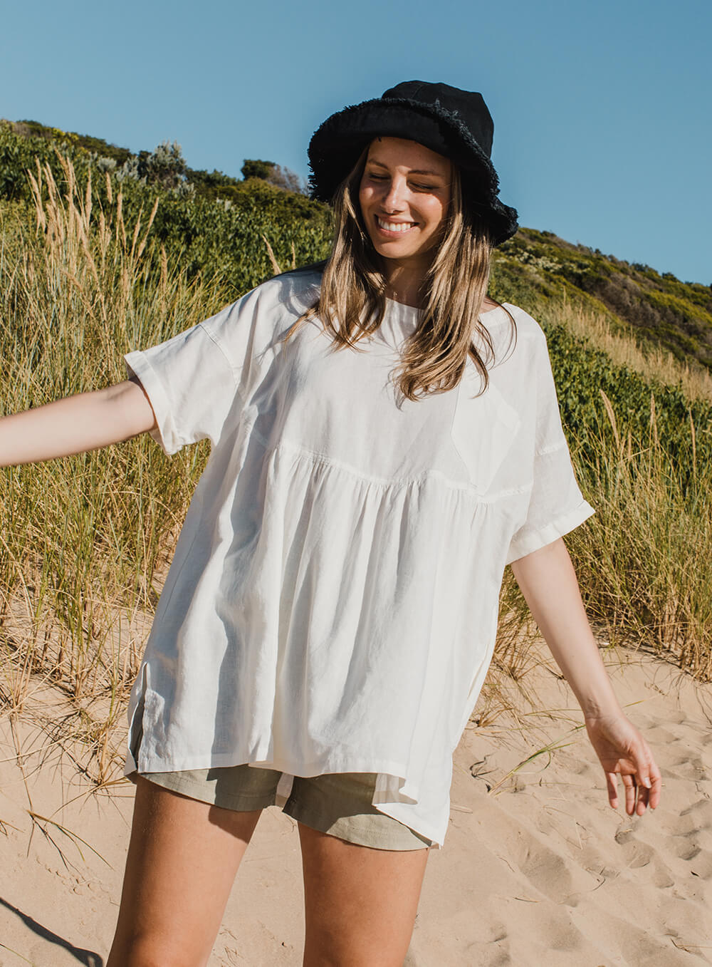 The Stella top is a figure flattering staple in a free-flowing billowy silhouette. A piece from our latest Endless Summer release, featuring effortless styles for the Australian sun.