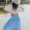 Elastic back for easy fit. Tiered full style fit. Model wears size 8.